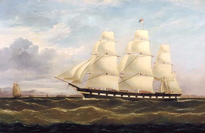 On Jan. 16, 1843, we set sail from Liverpool and as we slowly saw the land disappear in the distance we sang one of the songs of Zion and cheered each other with sympathizing words. We were the first British emigrant company of the season, and numbered two hundred and twelve souls. We had a pleasant voyage across the Atlantic, during which time just before reaching the American shore Mary gave birth to a little son, whom we named William M. Layton.