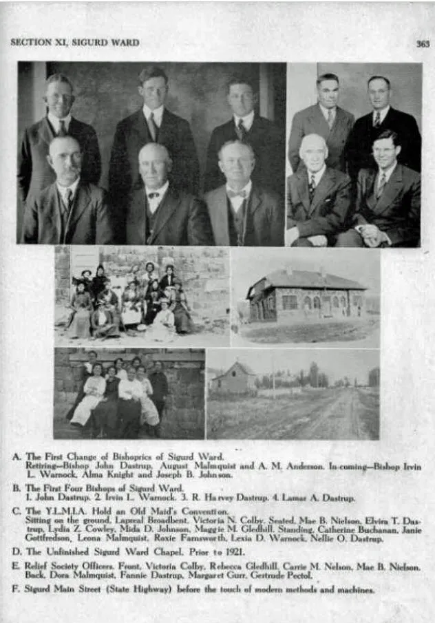 The Dastrups were early settlers of Sigurd, Sevier, Utah. As illustrated in the following exhibit they were the major property owners in early Sigurd. Dastrup descendants are still the major property owners in the area.